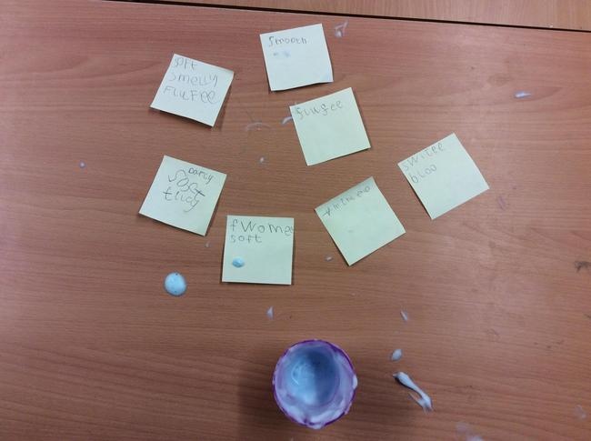 Science exploring materials- The children explored different materials and wrote about how they felt to touch.